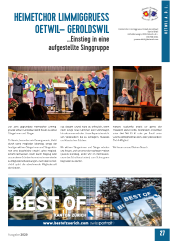 Heimetchor Limmiggruess Oetwil-Geroldswil Daniel Dittli Girhaldenweg 6, 8955 Oetwil a.d.L. 044 748 33 61 yvonne.dittli@hotmail.com