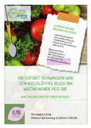 AB SOFORT SCHWINGEN WIR DEN KOCHLÖFFEL AUCH AM WOCHENENDE FÜR SIE.