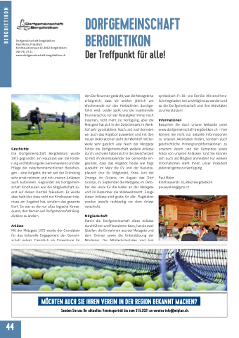 Page 44 - Gewerbe- und Vereinsinfo Dietikon-Bergdietikon, Ausgabe 11