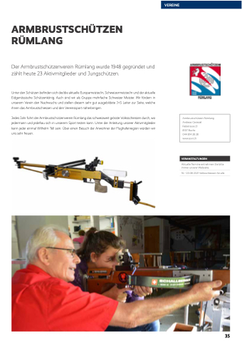 Der Armbrustschützenverein Rümlang wurde 1948 gegründet und zählt heute 23 Aktivmitglieder und Jungschützen.