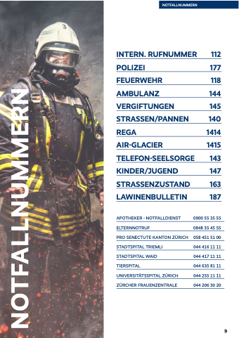 INTERN. RUFNUMMER 112 POLIZEI 177 FEUERWEHR 118 AMBULANZ 144 VERGIFTUNGEN 145 STRASSEN/PANNEN 140 REGA 1414 AIR-GLACIER 1415 TELEFON-SEELSORGE 143