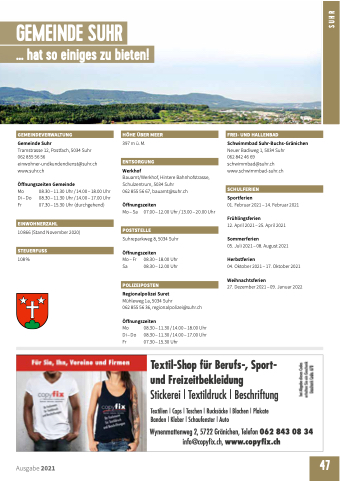 Tramstrasse 12, Postfach, 5034 Suhr 062 855 56 56 einwohner-undkundendienst@suhr.ch www.suhr.ch