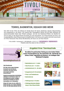 Seit 1982 ist das TIVOLI die Adresse im Norden Berns für Tennis, Badminton, Squash, Fitnesstraining und Entspannung in der Sauna. Auf unseren fünf Tennisplätzen können Sie bei jeder Witterung auf gelenkschonendem Boden dem Filzball nachjagen. Auf den vier Badminton-Plätzen den Shuttle hin- und her jagen, in den Squash-Boxen das Beste aus sich herausholen. Ein Fitnesstraining auf Kraft- und Ausdauergeräten, etwas Entspannung im Dampfbad oder in der Sauna, und zu guter Letzt noch einen Snack im TIVOLI Restaurant. Was immer Sie wünschen, wir freuen uns auf Ihren Besuch!