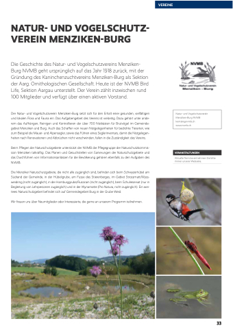 Natur- und Vogelschutzverein Menziken-Burg NVMB kontakt@nvmb.ch www.nvmb.ch