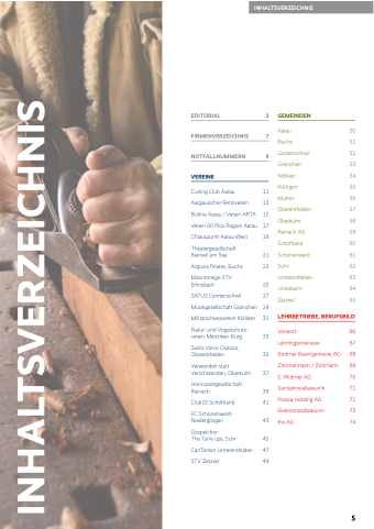 EDITORIAL 3 FIRMENVERZEICHNIS 7 NOTFALLNUMMERN 9 VEREINE