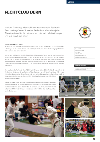 Mit rund 200 Mitgliedern zählt der traditionsreiche Fechtclub Bern zu den grössten Schweizer Fechtclubs. Musketiere jeden Alters trainieren hier für nationale und internationale Wettkämpfe – und aus Freude am Sport.