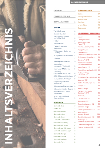 EDITORIAL 3 FIRMENVERZEICHNIS 7 NOTFALLNUMMERN 11 VEREINE