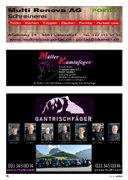 Multi Renova AG Schreinerei TürenžKüchenžTreppenžDeckenžFensteržParkett usw. Altelsweg 14ž3661 Uetendorf žTel. 033 345 54 55 www.multirenova.portas.chžportas@bluewin.ch 16 Ausgabe 2021/22