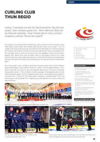 Beim Curling spielen Frauen und Männer gemeinsam, Interessierte jeden Alters und auch Erfahrene gegen Neueinsteigende. Curling verbindet. All dies ist zu erleben in der Curlinghalle Grabengut in Thun, wo der Curling Club Thun Regio mit seinen 160 Mitgliedern beheimatet ist. 20 Turniere und nationale Meisterschaften werden in Thun von Oktober bis März ausgetragen. Dienstagabends jeweils wird die Hallenmeisterschaft gespielt. Und für Einsteigende werden Kurse und Schnuppercurlings angeboten. Interessierte sind im Curling Club Thun Regio jederzeit willkommen. Besonders beliebt: Firmen und Vereine können in der Curlinghalle Thun in Begleitung von Clubmitgliedern einen Anlass mit Spiel und Spass durchführen.