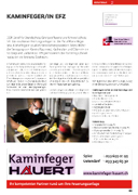 In Wohnhäusern zählt primär die periodische Rei- nigung und Wartung von Feuerungs- und Rauch- abzugsanlagen (Öl-, Gas- und Holzfeuerungen etc.) zu den Aufgaben der Kaminfeger/innen. Auch die Industrie und das Gewerbe benötigen die Dienstleistungen der kompetenten Fachpersonen: Schulhäuser, Spitäler, Heime, Mehrzweckhallen usw. haben einen grossen Bedarf an Wärme und Warmwasser, der über Heizungsgrossanlagen, bspw. moderne Holzschnitzel-Heizungen, gedeckt wird.