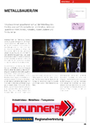 Metallbauer/innen der Fachrichtung Stahlbau arbeiten in grossen Montagehallen und fertigen Tragkonstruktionen für Hallen, Brücken oder Lifte. Bei den Schmiedearbeiten kommen neben den Verarbeitungstechniken des Metall- und Stahl- baus Hammer und Amboss zum Einsatz. Das Schmiedeeisen wird in der Esse zum Glühen gebracht und anschliessend von Hand oder mit dem Dampfhammer geschmiedet. Metallbauer/ innen arbeiten vor allem mit Stahl und Aluminium, daneben verwenden sie aber auch Metalle wie Chromnickelstahl, Messing, Baubronze oder Kup- fer sowie Kunststoffe, Isoliermaterialien und Glas.