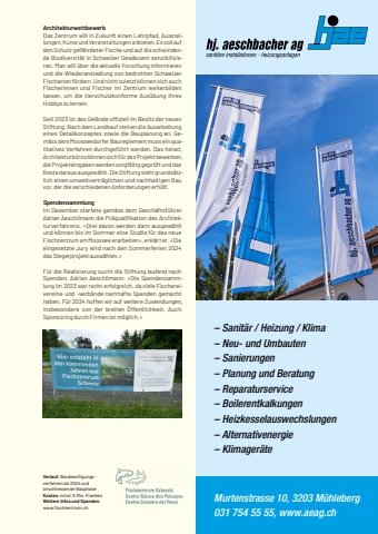 1 meine-region.ch Gemeinden meine-region.ch Gemeinden 13 Erlebniszentrum f%u00fcr Gew%u00e4sser und FischeMosseedorf soll bald zu einem Mekka f%u00fcr Freunde von Fischen und Gew%u00e4ssern in der Schweiz werden. Das neu ent,stehende Fischzentrum will informieren, sensibilisieren, weiterbilden und sich f%u00fcr die Biodiversit%u00e4t einsetzen. Im Jahr 2024 wird im Rahmen eines Architekturwettbewerbs das defi nitive Projekt aus,gew%u00e4hlt.In der Gemeinde Mosseedorf entsteht nach dem Vor,bild der Vogelwarte Sempach ein nationales Fischzent,rum %u2013 dies auf dem Gel%u00e4nde der ehemaligen Fischzucht am Mossee. Die Initianten der Stiftung Fischzentrum Schweiz sind froh, dass daf%u00fcr ein geeignetes Gel%u00e4nde gefunden werden konnte. Fr%u00fchere Versuche zur Reali,sierung des Projekts in Schaffhausen, im Aargau und im Eichholz in Wabern scheiterten. Die Gemeinde unter,st%u00fctzt das Projekt und nahm deshalb extra eine Umzo,nung vor, welche der Kanton 2022 genehmigte. Denn der Standort lag in einer Landwirtschaftszone und in einem Naturschutzgebiet. Ebenfalls 2022 konnte die Stiftung Fischzentrum Schweiz sich mit dem Landbe,sitzer des 5500 Quadratmeter grossen Areals einigen und einen entsprechenden Kaufvertrag abschliessen. F%u00fcr die Umsetzung des Projekts wurde die Tr%u00e4gerstif,tung %u00abFischzentrum Schweiz%u00bb gegr%u00fcndet. Als Pr%u00e4si,dent konnte der Alt-St%u00e4nderat Roberto Zanetti gewon,nen werden, der auch Pr%u00e4sident des Schweizerischen Fischereiverbandes ist. Nebst dem Fischereiverband steht auch der %u00ab111er Club%u00bb hinter dem Vorhaben. Das ist die gr%u00f6sste Sponsoren-Vereinigung f%u00fcr die Fische und die Fischerei in der Schweiz. Zweck der neu gegr%u00fcn,deten Stiftung ist der Aufbau und Betrieb des Erlebnis,und Ausbildungszentrums %u00abf%u00fcr nat%u00fcrliche Gew%u00e4sser, Fische und respektvolle Fischerei%u00bb. Bet%u00e4tigen will man sich in folgenden Aufgabefeldern: Forschung, Bildung, Sensibilisierung und %u00d6ffentlichkeitsarbeit, Vermittlung von Naturerlebnissen, Beratung, Schutz sowie in der nachhaltigen Nutzung von einheimischen Fischarten.ArchitekturwettbewerbDas Zentrum will in Zukunft einen Lehrpfad, Ausstellungen, Kurse und Veranstaltungen anbieten. Es soll auf den Schutz gef%u00e4hrdeter Fische und auf die schwindende Biodiversit%u00e4t in Schweizer Gew%u00e4ssern sensibilisieren. Man will %u00fcber die aktuelle Forschung informieren und die Wiederansiedlung von bedrohten Schweizer Fischarten f%u00f6rdern. Und nicht zuletzt k%u00f6nnen sich auch Fischerinnen und Fischer im Zentrum weiterbilden lassen, um die tierschutzkonforme Aus%u00fcbung ihres Hobbys zu lernen. Seit 2023 ist das Gel%u00e4nde offi ziell im Besitz der neuen Stiftung. Nach dem Landkauf stehen die Ausarbeitung eines Detailkonzeptes sowie die Bauplanung an. Gem%u00e4ss dem Moosseedorfer Baureglement muss ein qualitatives Verfahren durchgef%u00fchrt werden. Das heisst, Architekturb%u00fcros k%u00f6nnen sich f%u00fcr das Projekt bewerben, die Projekteingaben werden sorgf%u00e4ltig gepr%u00fcft und das Beste daraus ausgew%u00e4hlt. Die Stiftung sieht grunds%u00e4tzlich einen umweltvertr%u00e4glichen und nachhaltigen Bau vor, der die verschiedenen Anforderungen erf%u00fcllt. SpendensammlungIm Dezember startete gem%u00e4ss dem Gesch%u00e4ftsf%u00fchrer Adrian Aeschlimann die Pr%u00e4qualifi kation des Architekturverfahrens. %u00abDrei davon werden dann ausgew%u00e4hlt und k%u00f6nnen bis im Sommer eine Studie f%u00fcr das neue Fischzentrum am Moossee erarbeiten%u00bb, erkl%u00e4rt er. %u00abDie eingesetzte Jury wird nach den Sommerferien 2024 das Siegerprojekt ausw%u00e4hlen.%u00bb F%u00fcr die Realisierung sucht die Stiftung laufend nach Spenden. Adrian Aeschlimann: %u00abDie Spendensammlung im 2023 war recht erfolgreich, da viele Fischereivereine und -verb%u00e4nde namhafte Spenden gemacht haben. F%u00fcr 2024 hoffen wir auf weitere Zuwendungen, insbesondere von der breiten %u00d6ffentlichkeit. Auch Sponsoring durch Firmen ist m%u00f6glich.%u00bbVerlauf: Baubewilligungs -verfahren ab 2024 und anschliessende BauphaseKosten: mind. 5 Mio. FrankenWeitere Infos und Spenden:www.fi%u0009schzentrum.chInserat halbseitig, 101 x 297 mm%u2013 Sanit%u00e4r / Heizung / Klima%u2013 Neu- und Umbauten%u2013 Sanierungen%u2013 Planung und Beratung%u2013 Reparaturservice%u2013 Boilerentkalkungen%u2013 Heizkesselauswechslungen%u2013 Alternativenergie%u2013 Klimager%u00e4teMurtenstrasse 10, 3203 M%u00fchleberg031 754 55 55, www.aeag.ch