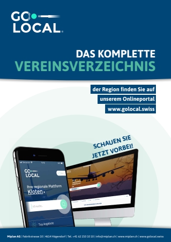 66 meine-region.ch VereineDAS KOMPLETTE VEREINSVERZEICHNISder Region finden Sie auf unserem Onlineportal www.golocal.swissSCHAUEN SIE JETZT VORBEI!Miplan AG | Fabrikstrasse 10 | 4614 H%u00e4gendorf | Tel. +41 62 210 10 10 | info@miplan.ch | www.miplan.ch | www.golocal.swiss