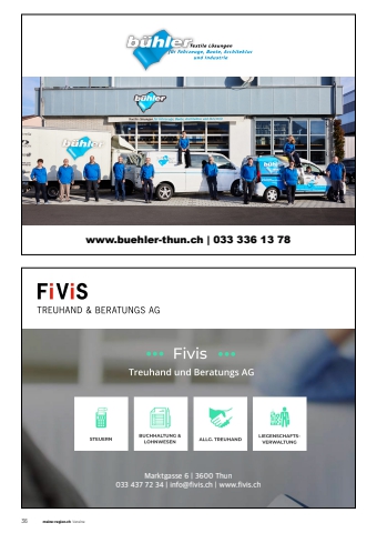 36 meine-region.ch VereineMarktgasse 6 | 3600 Thun033 437 72 34 | info@fivis.ch | www.fivis.chwww.buehler-thun.ch | 033 336 13 78