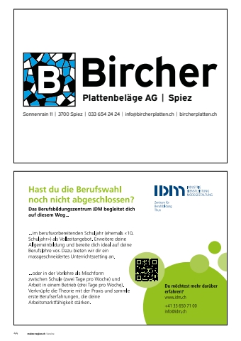 44 meine-region.ch VereineBircherPlattenbel%u00e4ge AG | SpiezSonnenrain 11 | 3700 Spiez | 033 654 24 24 | info@bircherplatten.ch | bircherplatten.ch