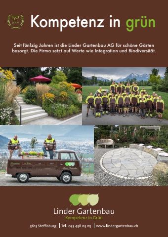 70 meine-region.ch ThemenberichteSeit f%u00fcnfzig Jahren ist die Linder Gartenbau AG f%u00fcr sch%u00f6ne G%u00e4rten besorgt. Die Firma setzt auf Werte wie Integration und Biodiversit%u00e4t.Kompetenz in gr%u00fcn