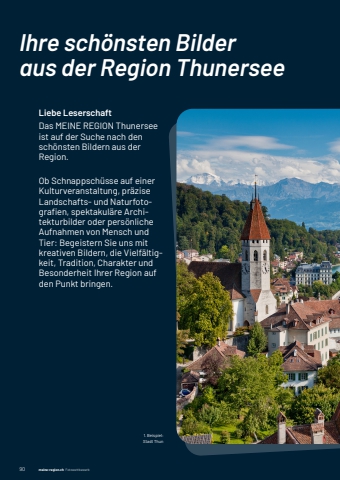 901 meine-region.ch meine-region.ch FotowettbewerbIhre sch%u00f6nsten Bilder aus der Region ThunerseeLiebe LeserschaftDas%u0009MEINE%u0009REGION%u0009Thunersee%u0009ist auf der Suche nach den sch%u00f6nsten%u0009Bildern%u0009aus%u0009der%u0009Region. Ob Schnappsch%u00fcsse auf einer Kulturveranstaltung, pr%u00e4zise Landschafts-%u0009und%u0009Naturfotografi%u0009en,%u0009spektakul%u00e4re%u0009Architekturbilder%u0009oder%u0009pers%u00f6nliche%u0009Aufnahmen von Mensch und Tier: Begeistern Sie uns mit kreativen Bildern, die Vielf%u00e4ltigkeit,%u0009Tradition,%u0009Charakter%u0009und%u0009Besonderheit Ihrer Region auf den Punkt bringen.1. Beispiel: Stadt Thun