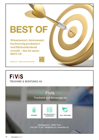 56 meine-region.ch VereineMarktgasse 6 | 3600 Thun033 437 72 34 | info@fivis.ch | www.fivis.chWissenswert, interessant, hochwertig produziert und fl %u00e4chendeckend verteilt %u2013 das ist unser BEST OF.Dabei sein %u2013 mitten unter den Besten
