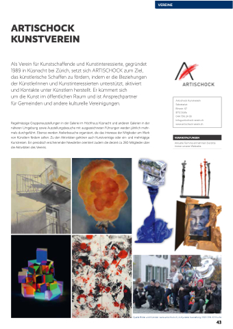 Als Verein für Kunstschaffende und Kunstinteressierte, gegründet 1989 in Küsnacht bei Zürich, setzt sich ARTISCHOCK zum Ziel, das künstlerische Schaffen zu fördern, indem er die Beziehungen der KünstlerInnen und Kunstinteressierten unterstützt, aktiviert und Kontakte unter Künstlern herstellt. Er kümmert sich