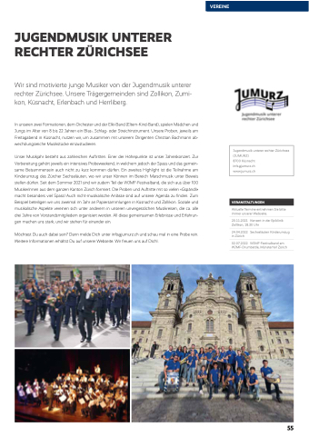 Wir sind motivierte junge Musiker von der Jugendmusik unterer rechter Zürichsee. Unsere Trägergemeinden sind Zollikon, Zumi- kon, Küsnacht, Erlenbach und Herrliberg.