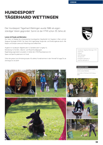 Der Hundesport Tägerhard Wettingen wurde 1986 als eigen- ständiger Verein gegründet. Somit ist der HTW schon 35 Jahre alt.