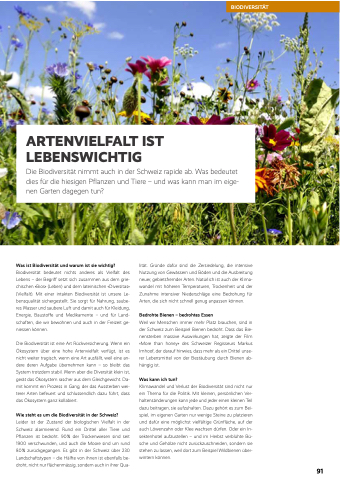 Die Biodiversität nimmt auch in der Schweiz rapide ab. Was bedeutet dies für die hiesigen Pflanzen und Tiere – und was kann man im eige- nen Garten dagegen tun?