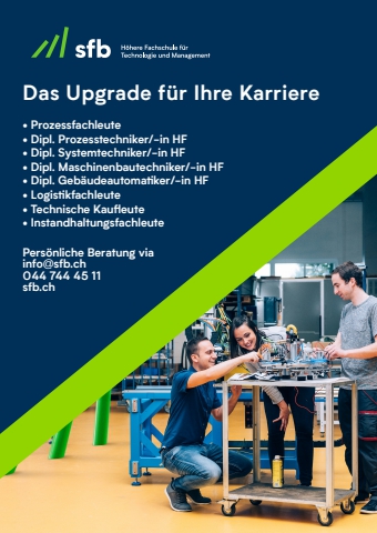 10 meine-region.ch InhaltDas Upgrade f%u00fcr Ihre Karriere%u2022 Prozessfachleute%u2022 Dipl. Prozesstechniker/-in HF%u2022 Dipl. Systemtechniker/-in HF%u2022 Dipl. Maschinenbautechniker/-in HF%u2022 Dipl. Geb%u00e4udeautomatiker/-in HF%u2022 Logistikfachleute%u2022 Technische Kaufleute%u2022 InstandhaltungsfachleutePers%u00f6nliche Beratung viainfo@sfb.ch044 744 45 11sfb.ch