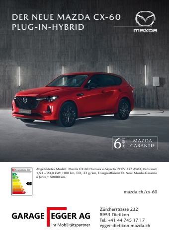 Z%u00fcrcherstrasse 2328953 DietikonTel. +41 44 745 17 17 egger-dietikon.mazda.ch mazda.ch/cx-60DER NEUE MAZDA CX-60PLUG-IN-HYBRIDAbgebildetes Modell: Mazda CX-60 Homura e-Skyactiv PHEV 327 AWD, Verbrauch 1,5 l + 23,0 kWh/100 km, CO2 33 g/km, Energiee%u0093 zienz D. Neu: Mazda-Garantie 6 Jahre/150 000 km. ABCDEFGDWILD TRANSPORTE AG DIETIKONWir l%u00f6sen Ihre Transportsorgen als ob es unsere w%u00e4ren!Wir sind Ihr professioneller Partner f%u00fcr individuelle Transportl%u00f6sungen. Fachgebiete: R%u00e4umungen, Solartransporte, Neuk%u00fcchen logistik, Tresorverschiebungen, Industrie- und Spitalumz%u00fcge, Entsorgung mit Muldenfahrzeug, Aktenarchiv, FahrzeugUeberf%u00fchrungen etc.Firmen- & Privatumz%u00fcgeIhr Umzug ist bei uns in guten H%u00e4nden.Beratung und Besichtigung vor Ort.Lagerhaus / AktenarchivLagerfl %u00e4che im M%u00f6bel- und Palettengeb%u00e4ude oder in den Aussencontainern zum Selfstorage in der Drive-In-Zone. Platz von rund 3200 m2zur Verf%u00fcgung.Mietwagen / Z%u00fcgelshopLieferwagen mit oder ohne Hebeb%u00fchne, Anh%u00e4nger, Z%u00fcgellift mit Bediener, Kleinbus f%u00fcr Eigenfahrten. Im Z%u00fcgelshop fi nden Sie eine grosse Auswahl an Pack- und Z%u00fcgelhilfsmaterial.intern %u2013 regional %u2013 national %u2013 Eigenf%u00fcllung Muldelagern %u2013 kommissionieren %u2013 spedieren %u2013 selfstorageintern %u2013 regional %u2013 national %u2013 internationalvermieten %u2013 verkaufenR%u00e4umungen / Entsorgung / MuldeWir leeren Ihre Wohnung, Ihr Haus, Keller oder die Garage. R%u00e4ume werden besenrein hinterlassen.