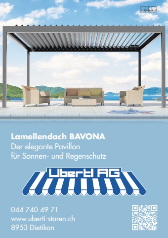 20 meine-region.ch VereineLamellendach BAVONADer elegante Pavillon f%u00fcr Sonnen- und Regenschutzwww.uberti-storen.ch8953 Dietikon044 740 49 71