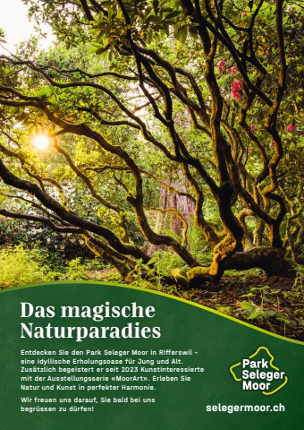 66 meine-region.ch VereineDas magischeNaturparadiesEntdecken Sie den Park Seleger Moor in Rifferswil %u2013 eine idyllische Erholungsoase f%u00fcr Jung und Alt. Zus%u00e4tzlich begeistert er seit 2023 Kunstinteressierte mit der Ausstellungsserie %u00abMoorArt%u00bb. Erleben Sie Natur und Kunst in perfekter Harmonie.Wir freuen uns darauf, Sie bald bei uns begr%u00fcssen zu d%u00fcrfen! selegermoor.chPSM_INS_LimmattalMag_04-2024_A4.indd 1 16.09.23 13:14