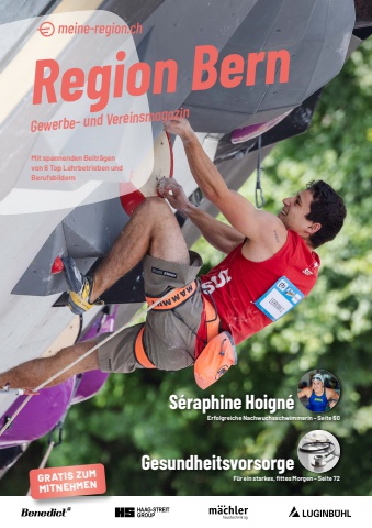 Region BernGewerbe- und VereinsmagazinGRATIS ZUM MITNEHMENMit spannenden Beitr%u00e4gen von 6 Top Lehrbetrieben und BerufsbildernS%u00e9raphine Hoign%u00e9 Erfolgreiche Nachwuchsschwimmerin %u2013 Seite 60Gesundheitsvorsorge F%u00fcr ein starkes, fi ttes Morgen %u2013 Seite 72