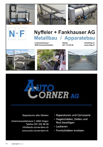 54 meine-region.ch VereineLindenackerweg 13506 Grossh%u00f6chstettenTelefon031 710 28 28info@nfag.chwww.nfag.ch%u2022 Reparaturen und Carrosserie %u2022 Hagelsch%u00e4den, Dellen und Rost beseitigen %u2022 Lackieren %u2022 Frontscheiben ersetzen Reparaturen aller MarkenSchermenwaldstrasse 7, 3063 IttigenTelefon 031 333 38 38info@auto-corner-bern.chwww.auto-corner-bern.ch