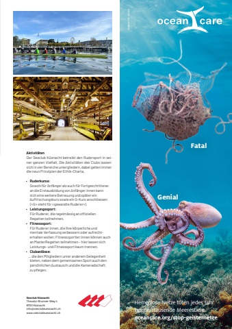 meine-region.ch Vereine 27Seeclub K%u00fcsnachtTheodor-Brunner-Weg%u000948700%u0009K%u00fcsnachtinfo@seeclubkuesnacht.chwww.seeclubkuesnacht.chAktivit%u00e4tenDer Seeclub K%u00fcsnacht betreibt den Rudersport in seiner ganzen Vielfalt. Die Aktivit%u00e4ten des Clubs lassen sich in vier Bereiche untergliedern, dabei gelten immer die neun Prinzipien der Ethik-Charta.%u2022 Ruderkurse:Sowohl f%u00fcr Anf%u00e4nger als auch f%u00fcr Fortgeschrittene:an die Erstausbildung von Anf%u00e4nger:innen kann sich eine weitere Betreuung und sp%u00e4ter ein Auffrischungskurs sowie ein G-Kurs anschliessen (%u00abG%u00bb steht f%u00fcr %u00abgewandte Ruderer%u00bb).%u2022 Leistungssport:F%u00fcr Ruderer, die regelm%u00e4ssig an offi ziellen Regatten teilnehmen.%u2022 Fitnesssport:F%u00fcr Ruderer:innen, die ihre k%u00f6rperliche und mentale Verfassung verbessern oder aufrechterhalten wollen: Fitnesssportler:innen k%u00f6nnen auch an MasterRegatten teilnehmen %u2013 hier lassen sich Leistungs- und Fitnesssport kaum trennen.%u2022 Clubanl%u00e4sse:%u2026 die den Mitgliedern unter anderem Gelegenheit bieten, neben dem gemeinsamen Sport auch den pers%u00f6nlichen Austausch und die Kameradschaft zu pfl egen.Inserat halbseitig, 101 x 297 mmGenialFatalSPINAS CIVIL VOICESHerrenlose Netze t%u00f6ten jedes Jahr hunderttausende Meerestiere. oceancare.org/stop-geisternetze