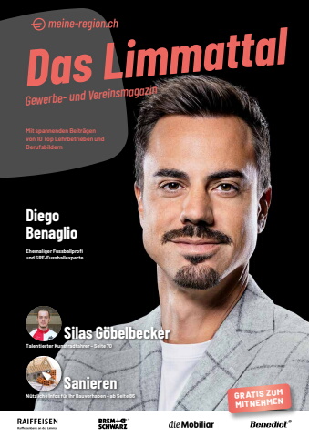 Das LimmattalMit spannenden Beitr%u00e4gen von 10 Top Lehrbetrieben und Berufsbildern Silas G%u00f6belbeckerTalentierter Kunstradfahrer %u2013 Seite 70 SanierenN%u00fctzliche Infos f%u00fcr Ihr Bauvorhaben %u2013 ab Seite 86Gewerbe- und VereinsmagazinGRATIS ZUM MITNEHMENDiegoBenaglioEhemaliger Fussballprofi und SRF-Fussballexperte