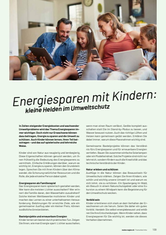 meine-region.ch meine-region.ch Themenberichte 1091Energiesparen mit Kindern: kleine Helden im UmweltschutzIn Zeiten steigender Energiekosten und wachsender Umweltprobleme wird das Thema Energiesparen immer wichtiger. Doch nicht nur Erwachsene k%u00f6nnen dazu beitragen, Energie zu sparen und die Umwelt zu sch%u00fctzen. Auch Kinder k%u00f6nnen lernen, ihren Teil beizutragen %u2013 und das auf spielerische und lehrreiche Weise.Kinder sind von Natur aus neugierig und lernbegierig. Diese Eigenschaften k%u00f6nnen genutzt werden, um ihnen fr%u00fchzeitig die Bedeutung des Energiesparens zu vermitteln. Einfache Erkl%u00e4rungen dar%u00fcber, warum es wichtig ist, Energie zu sparen, k%u00f6nnen den Grundstein legen. Sprechen Sie mit Ihren Kindern %u00fcber den Klimawandel, die Schonung nat%u00fcrlicher Ressourcen und die Rolle, die jede einzelne Person dabei spielt.Energiesparen als FamilienspielDas Energiesparen kann spielerisch gestaltet werden. Wer kann die meisten Lichter ausschalten? Wer erinnert die Familie daran, den Wasserhahn zuzudrehen? Solche kleinen Wettbewerbe motivieren Kinder und machen das Lernen zu einer unterhaltsamen Herausforderung. Belohnungen f%u00fcr erreichte Ziele, wie ein gemeinsamer Ausfl ug oder ein kleiner Preis, k%u00f6nnen zus%u00e4tzliche Anreize bieten.Bastelprojekte und erneuerbare EnergienKinder lernen am besten durch praktisches Tun. Zeigen Sie ihnen, wie man Energie spart: Lichter ausschalten, wenn man einen Raum verl%u00e4sst, Ger%u00e4te komplett ausschalten statt Sie im Stand-by-Modus zu lassen, und Wasser bewusst nutzen. Auch das richtige L%u00fcften und Heizen kann gemeinsam ge%u00fcbt werden. Erkl%u00e4ren Sie dabei immer, warum diese Massnahmen wichtig sind.Gemeinsame Bastelprojekte k%u00f6nnen das Verst%u00e4ndnis f%u00fcrs Energiesparen und f%u00fcr erneuerbare Energien vertiefen. Bauen Sie zusammen einfache Solarlampen oder ein Modellwindrad. Solche Projekte sind nicht nur lehrreich, sondern f%u00f6rdern auch die Kreativit%u00e4t und das technische Verst%u00e4ndnis der Kinder.Natur erleben und sch%u00fctzenAusfl %u00fcge in die Natur k%u00f6nnen das Bewusstsein f%u00fcr Umweltschutz st%u00e4rken. Zeigen Sie Ihren Kindern, wie sch%u00f6n und wichtig unsere Umwelt ist und warum es sich lohnt, sie zu sch%u00fctzen. Ein Spaziergang im Wald, ein Besuch in einem Naturschutzgebiet oder eine Exkursion zu einem Windpark kann die Begeisterung f%u00fcr den Umweltschutz wecken.Vorbild seinKinder orientieren sich stark an dem Verhalten der Erwachsenen um sie herum. Seien Sie daher ein gutes Vorbild. Handeln Sie selbst energiebewusst und erkl%u00e4ren Sie Ihre Entscheidungen. Wenn Kinder sehen, dass Energiesparen f%u00fcr Sie wichtig ist, werden sie dieses Verhalten %u00fcbernehmen.