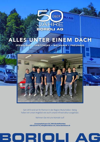 meine-region.ch Berufsbild 119ALLES UNTER EINEM DACHSPENGLEREI %u2022 SPRITZWERK %u2022 MECHANIK %u2022 PNEUHAUSSeit 1973 sind wir Ihr Partner in der Region Mutschellen. Stetig haben wir unser Angebot wie auch unsere Infrastruktur ausgebaut.Nehmen Sie mit uns Kontakt auf!Grossmattstrasse 26 | 8964 Rudolfstetten056 633 64 74 | info@boriolicar.ch | www.boriolicar.ch%u00dcBER