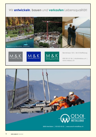 18 meine-region.ch Gemeinden3800 Interlaken | 033 823 42 82 | www.oesch-metallbau.chWir entwickeln, bauen und verkaufen Lebensqualit%u00e4t!Bernstrasse 133 | 3613 Steffisburg033 251 01 06 | info@mkbau.ch |www.mkbau.ch%u00dcberbauung Niesenblick, Oberhofen